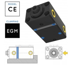 Fissaggio a piedino con orifizi integrati inferiori. Cilindro monoblocco per corse brevi.